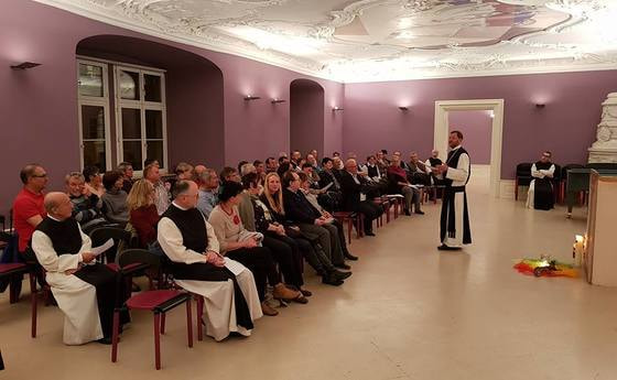 Auf Einladung von Abt Reinhold fanden sich die Vorstände fast aller Wilheringer Pfarren im Stift ein. Abt Reinhold begrüßte die Pfarrmitglieder im Stiftshof.