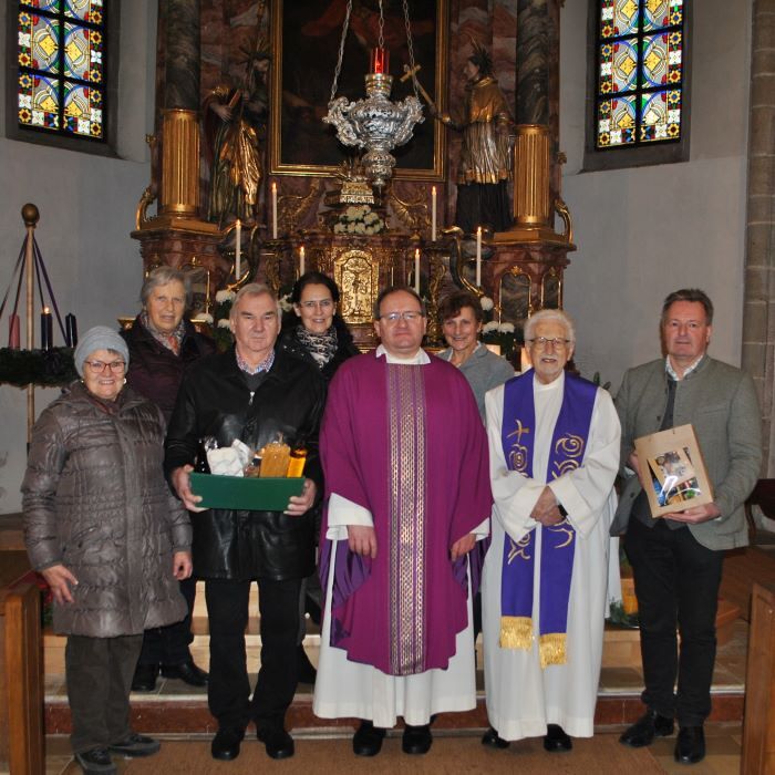 Pfarrer Renauer wird für seine langjährige seelsorgerische Tätigkeit in Michaelnbach gedankt.