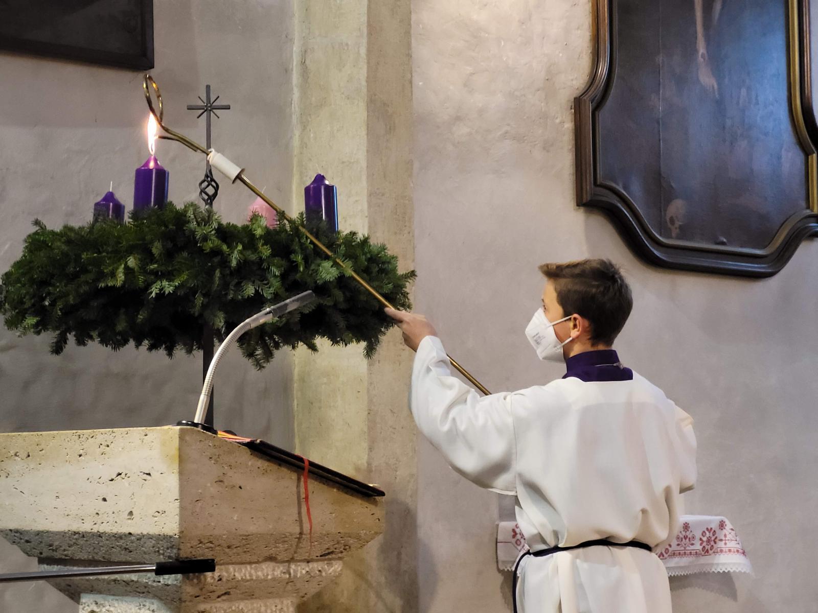 Im Rahmen der Vorabendmesse um 16 Uhr feierte die Pfarrgemeinde am 27.11.2021 die Adventkranzweihe. Kinder der 3. Klasse Volksschule und die Feliggs-Gruppe gestalteten den Gottesdienst in sehr ansprechender Weise für Jung und Alt.