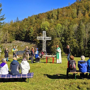 Vor 40 Jahren, im September 1984, errichtete die Pfarre Wolfsegg das Kreuz auf der Moosalm. Viele junge und junggebliebene wanderlustige Wolfsegger Familien mit großen und kleinen Kindern folgten der Einladung und wanderten bei prachtvollem Herbstwetter von Burgau am südlichen Atterseeufer entlang der Burggrabenklamm hinauf zur wunderschönen Moosalm. Einige pilgerten auf dem gemütlichen Almweg vom Schwarzensee und viele radelten entlang der Forststraße zur Moosalm.